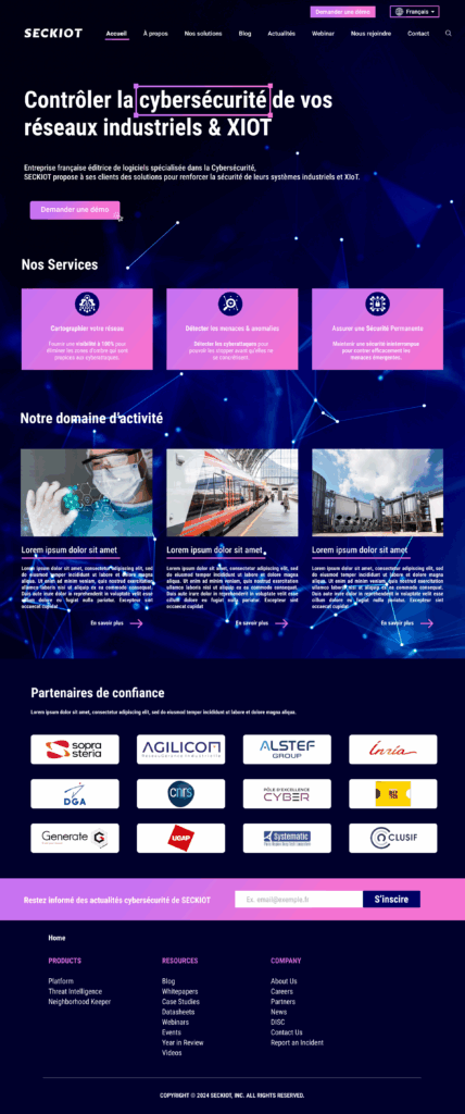 Seckiot est une entreprise spécialisée dans la cybersécurité des systèmes industriels (OT). Son objectif est de permettre aux entreprises de mieux protéger leurs infrastructures critiques face aux menaces numériques.